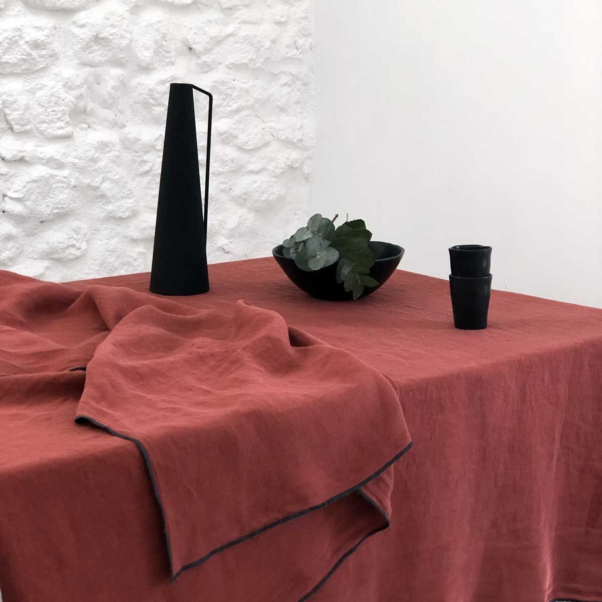Nappe Rectangulaire Lin Lave L300 Cm Caractere Rouge Linge De Table Eminza