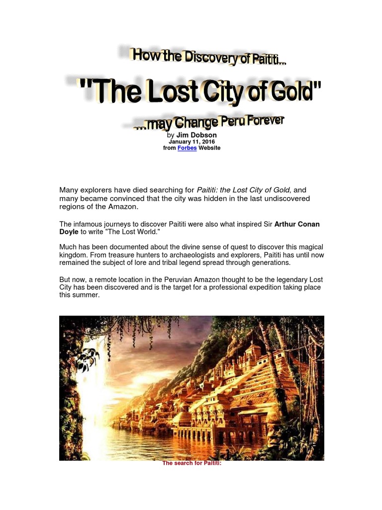 Finding The Lost City Of Gold Paititi Page 1