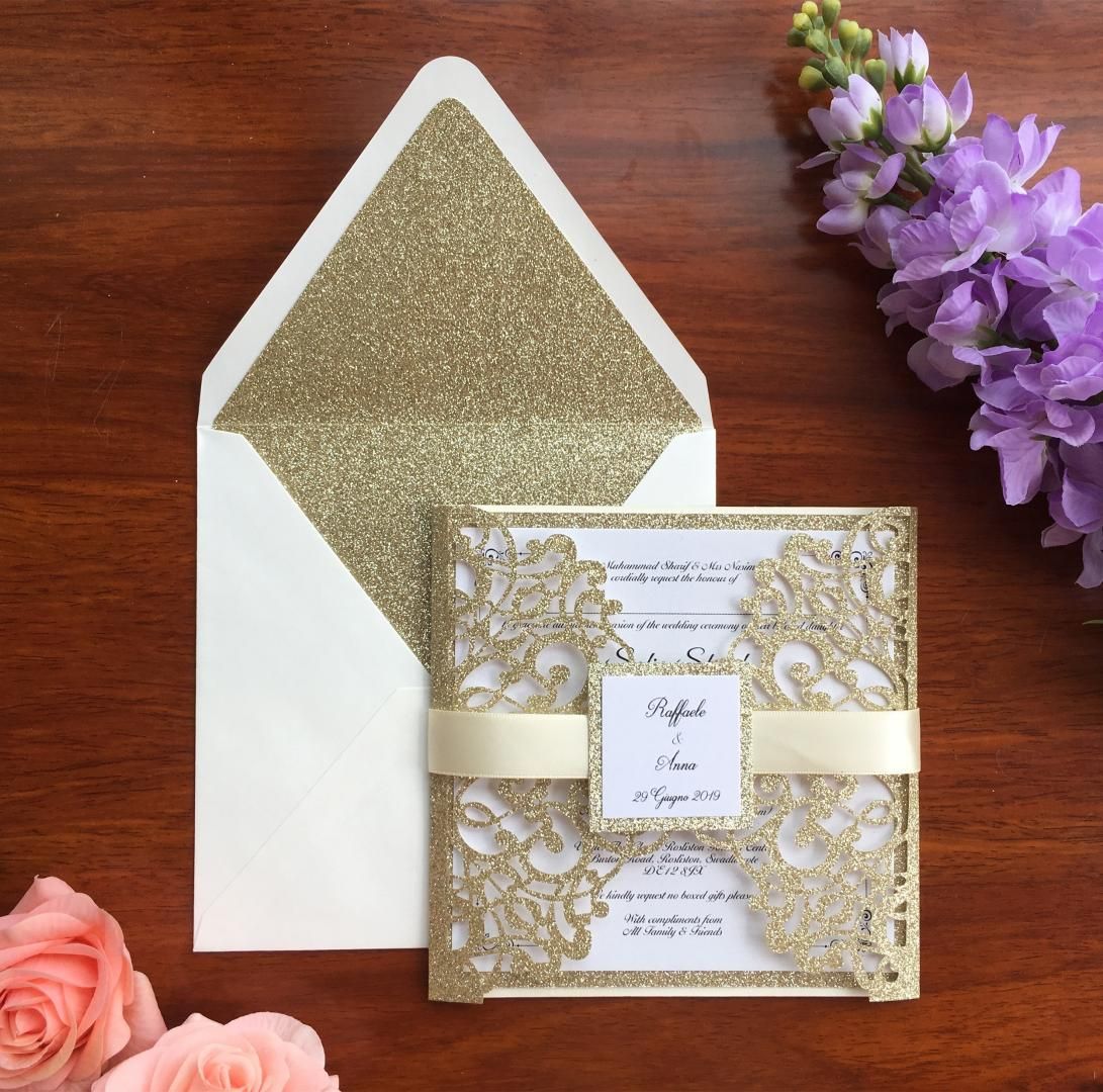 Grosshandel Kundenspezifische Laser Schnitt Glitter Wedding Party Einladungen Mit Band Umbau Heirat Einladungskarten Express Versand Von Galry 39 56 Auf De Dhgate Com Dhgate