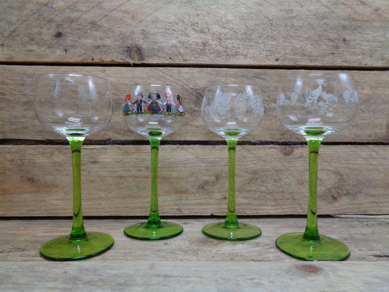 Anciens Verres A Pied Roemer Vin Blanc French Stemmed Glasses Alsace White Wine Ebay