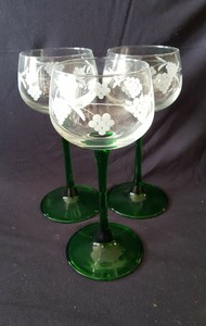 3 Verres A Vin Blanc Graves Pied Vert D Alsace Ebay