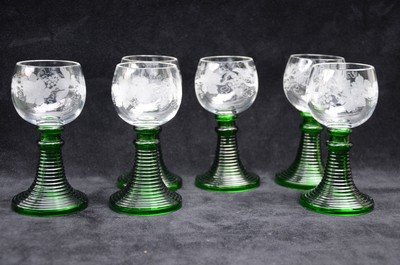Serie De 6 Verres A Vin Blanc Alsace Vin Du Rhin Roemer Verre Souffle Vert Grave Eur 68 00 Picclick Fr
